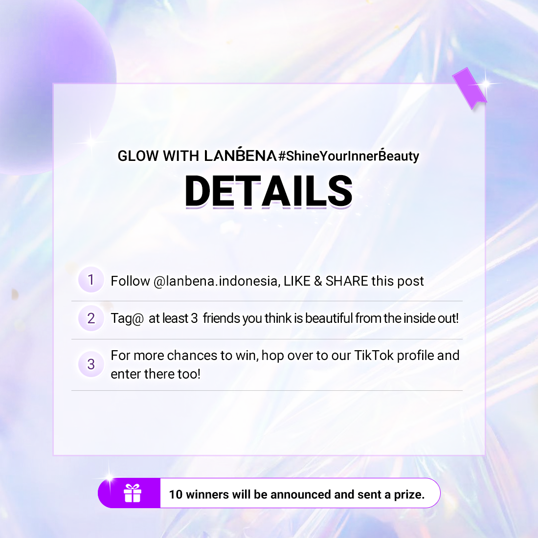 Gunakan hashtag: #GlowWithLANBENA #ShineYourInnerBeauty dan hashtag viral saat ini di Tiktok/Instagram