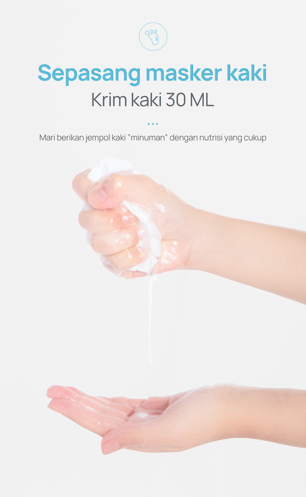 Langkah 2 : Keluarkan masker kaki, potong segelnya (Pemberitahuan: jauhkan tangan anda dari esensi).