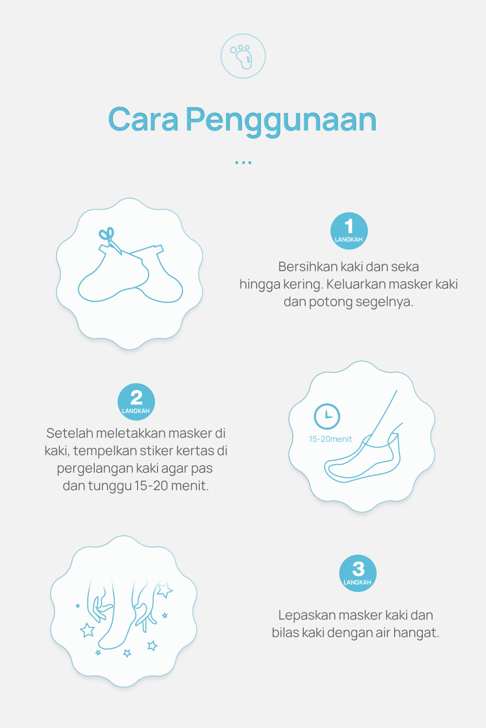 Langkah 4 : Lepaskan masker kaki setelah 60-90 menit.