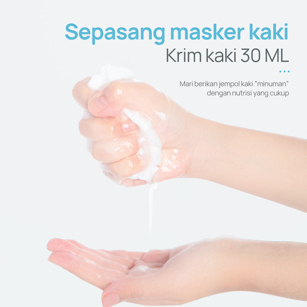 Langkah 2 : Keluarkan masker kaki, potong segelnya (Pemberitahuan: jauhkan tangan anda dari esensi).