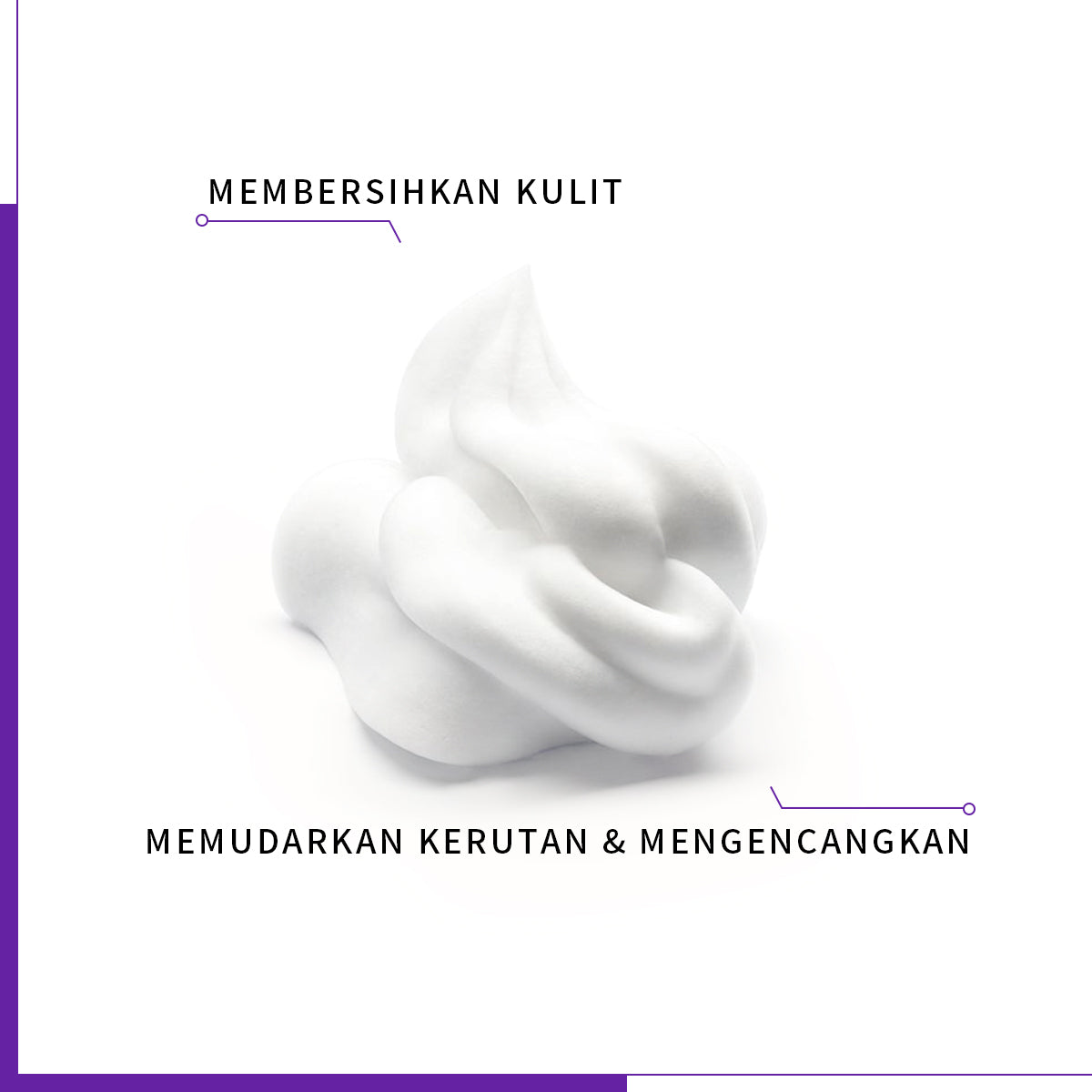 - Langkah 2: Oleskan busa secara merata ke wajah dan pijat lembut dengan gerakan memutar.